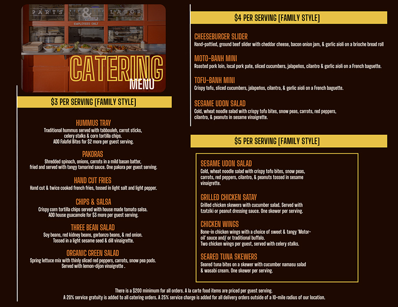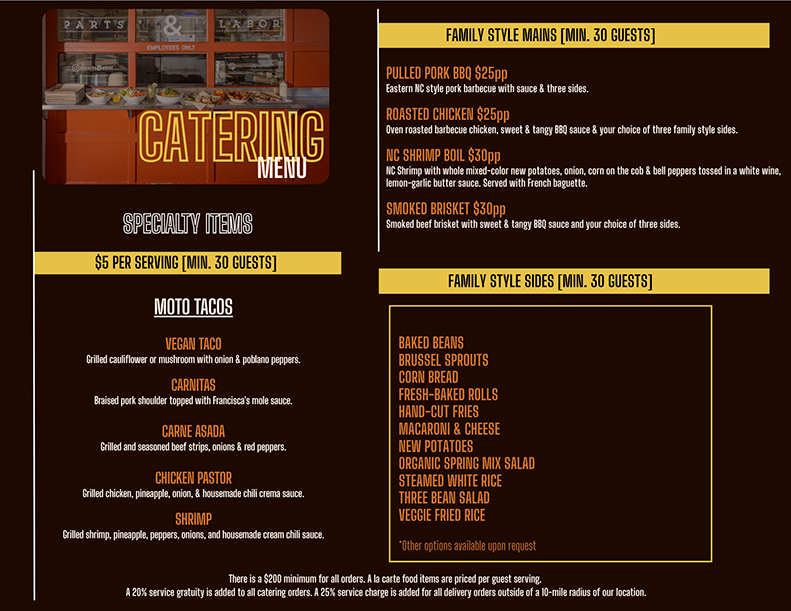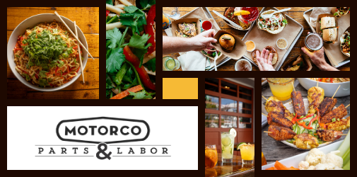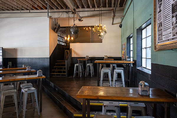 The Mezzanine and Landing provide a cozy, two-level indoor space ideal for small groups. Overlooking the Parts & Labor dining area, this private setting offers a warm, elevated atmosphere perfect for celebrations, group meals, or casual gatherings. Guests can enjoy a full range of food and beverage services from our in-house kitchen and bar, with the option to pre-order from our catering menu for a seamless and personalized experience.