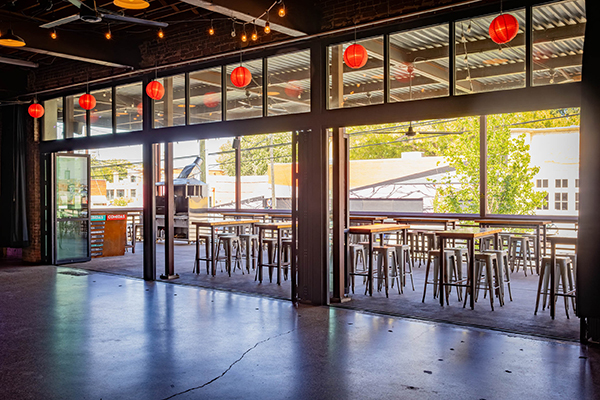 Enhance your event by adding our covered outdoor veranda to connect the indoor and outdoor spaces. Guests can enjoy in-house catering from our Parts&Labor kitchen, or bring in an outside caterer, providing flexibility to suit any menu or style.